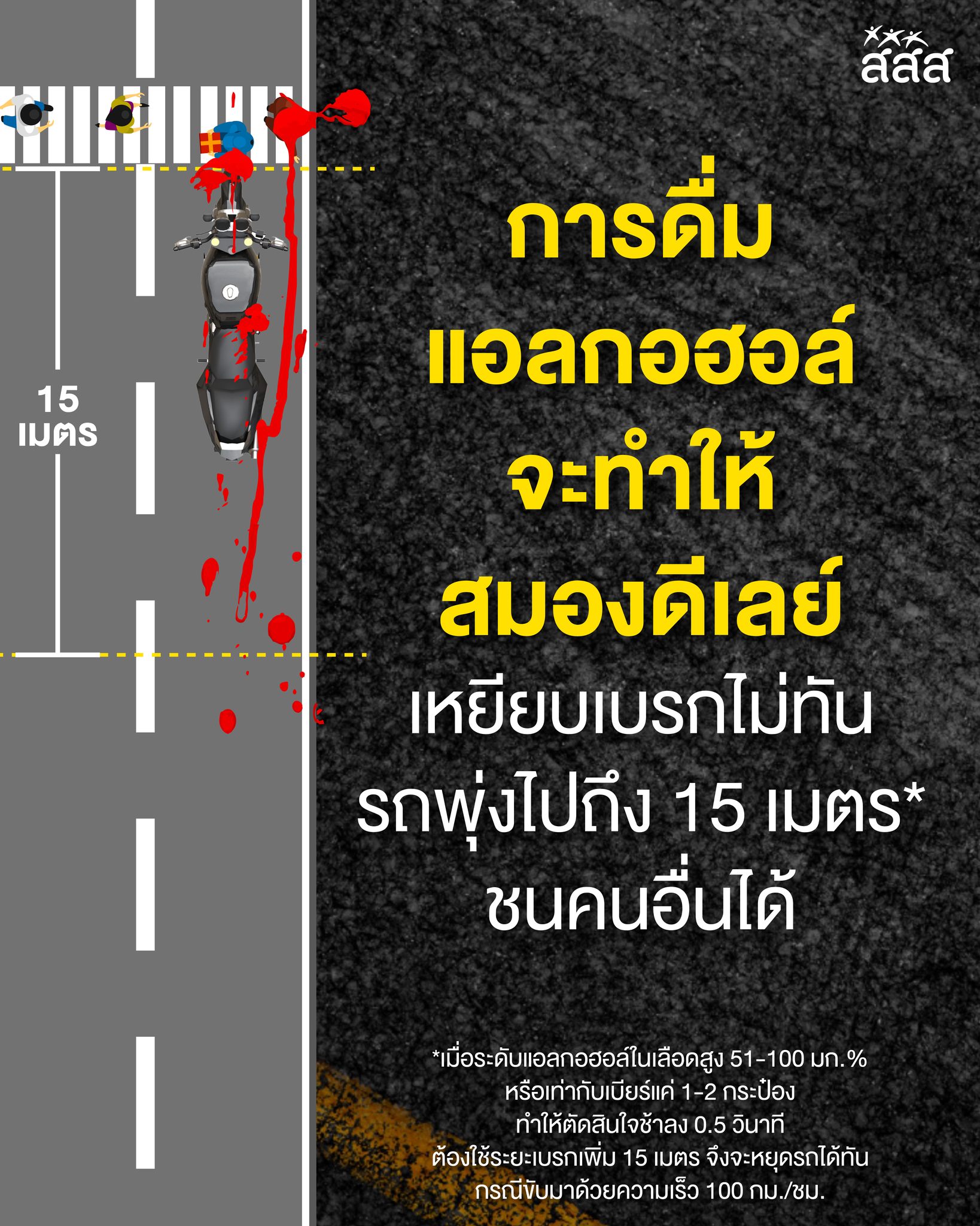 แน่ใจไหมว่าจะเบรกทัน…? รู้ไหมว่า เบียร์ แค่ 1-2 กระป๋อง อาจทำให้ระดับแอลกอฮอล์ในเลือดสูงถึง 51-100 มก.%* ทำให้ตัดสินใจช้าลง 0.5 วินาที …