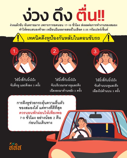 เคล็ดลับของสายขับรถเดินทางไกลที่ไม่อยากเผลอหลับใน ต้องฝึกขยับท่า ง่วง ดึงง ตื่น !!! ลองกันหรือยัง ? . แต่ถ้ายังง่วงไม่หาย อย่าฝืนขับเด็ดขาดนะ …