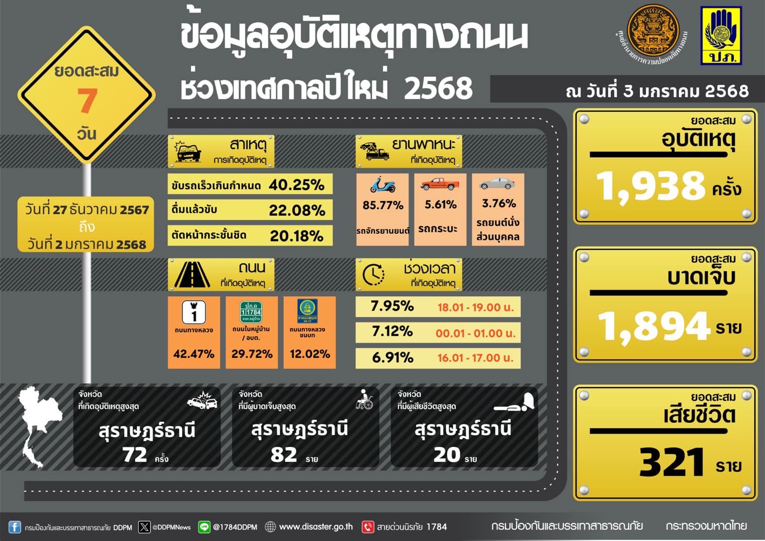 ข้อมูลอุบัติเหตุทางถนน ช่วงเทศกาลปีใหม่ 2568